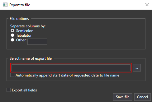In the export dialog, the user can check the 'Export all fields' checkbox at the bottom to export all fields of events, if this checkbox is unchecked, only field in the lists are exported.