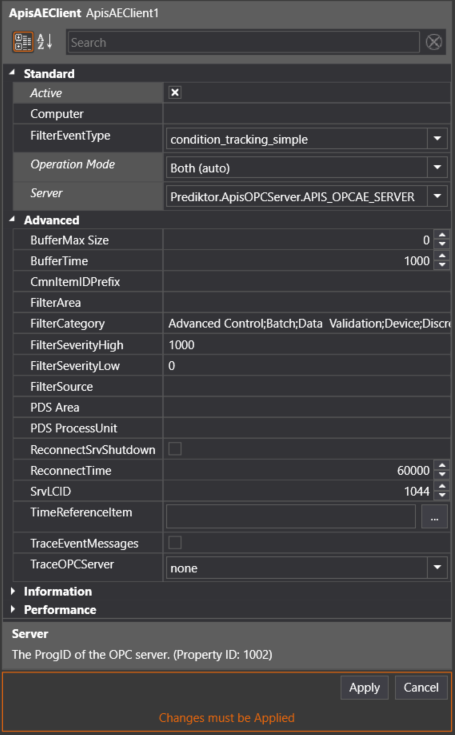 TIP: If you cannot see the name of your OPC AE server, take a look at the guide OPC DCOM Setup . The log viewer in Apis Management Studio can also be useful when trouble-shooting DCOM Setup.
