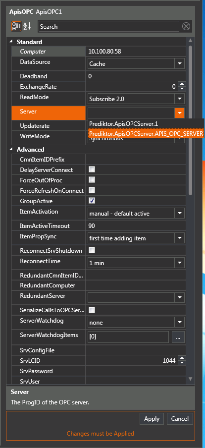 - Computer: The IP address or DNS name of your OPC server machine. If the OPC server is running on your local computer, you should leave this property blank.