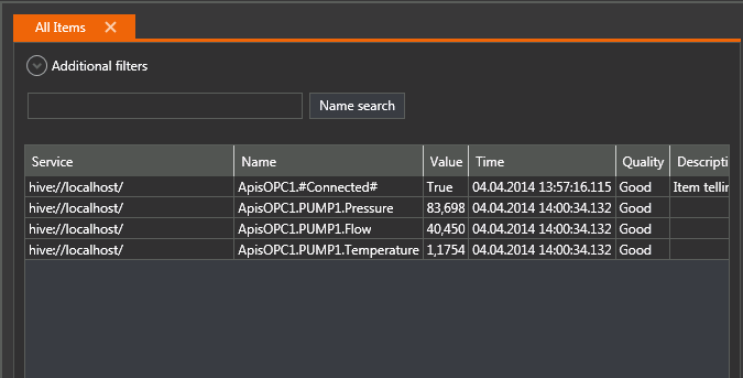 TIP: If you cannot see the name of your OPC server, take a look at the Guide OPC DCOM Setup . The log viewer in Apis Management Studio can also be useful when troubleshooting DCOM Setup.