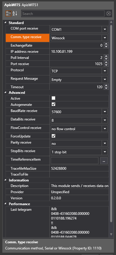 - Autogenerate :Decide whether the client should generate items automatically based on the telegram from the server. The items will be generated according to the specification in W.I.T.S. Wellsite Information Transfer Specification.