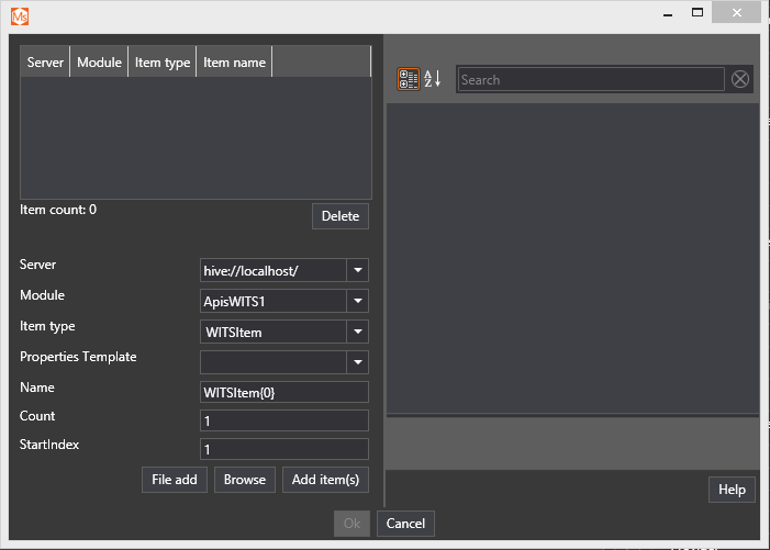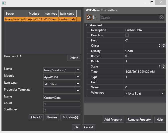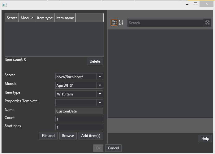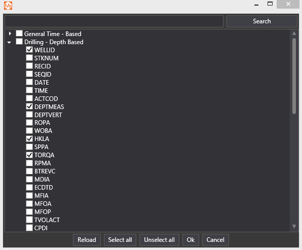 - A dialog opens that lets you select predefined items according to the specification in W.I.T.S. Wellsite Information Transfer Specification. Click "Ok" when done.
