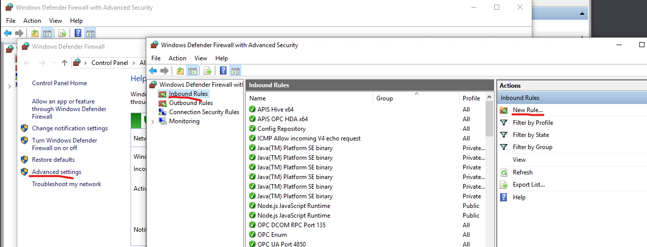 Select Inbound Rules in the tree, then press New Rule on the right.