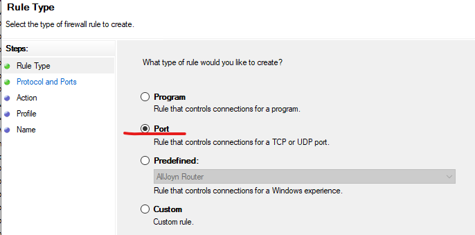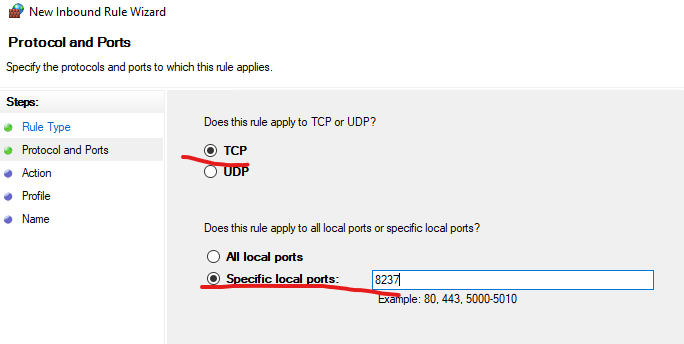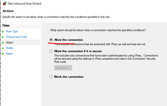 To allow for remote clients to connect to a CR, an inbound rule must be added to the firewall.