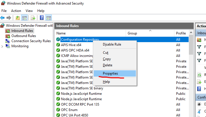 The rule is now created, but applies to all applications on the machine. To make it apply to CR only, go to the main window. Locate the new rule and right-click and select Properties: