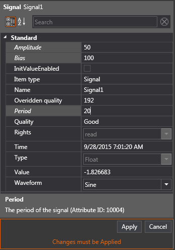 • In the attribute window select the attribute Period and set the value to 20