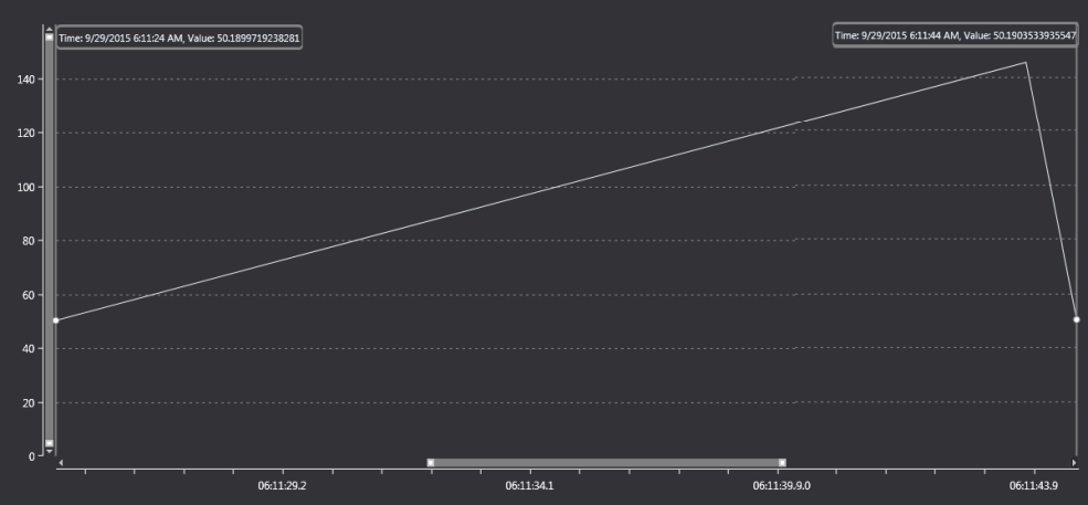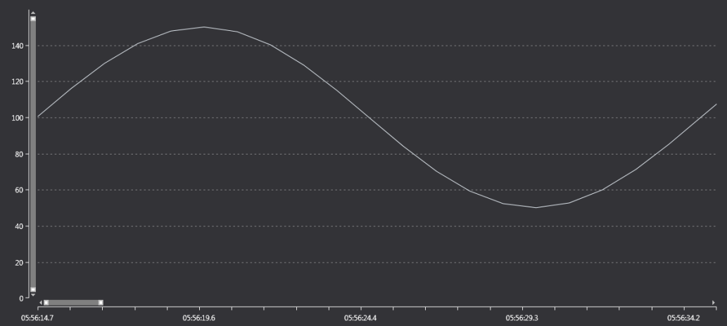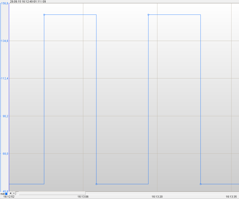 • You should get an sinus signal with an offset of 100 and amplitude of 50 and a period of 20 seconds as shown below.