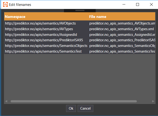 The following window will appear displaying the files the namespaces will be stored in.