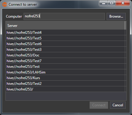 Then you can browse and connect to Apis services. - Apis Management Studio can only connect to running Apis services, not stopped ones.