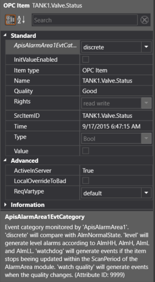 - The alarm Area name of the module in the Apis Event Server / Chronical.