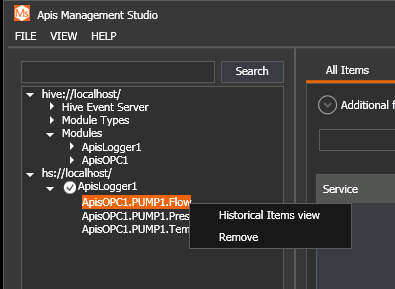 - Apis Management Studio is the main engineering interface for configuring Apis services.