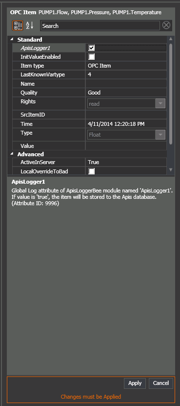 If any items of this module have been enabled for logging into a Apis Honeystore database, the corresponding items in the database may be deleted from the database as well. Deletion depends on the module property ItemDeletion of the corresponding ApisLoggerBee module