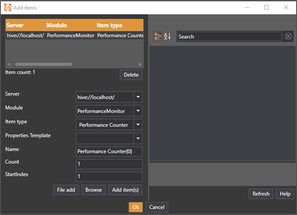 Give the item a name and click Add items. You can repeat this to create multiple items. Click OK when finished, and the items will be created in the module.