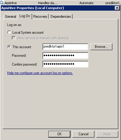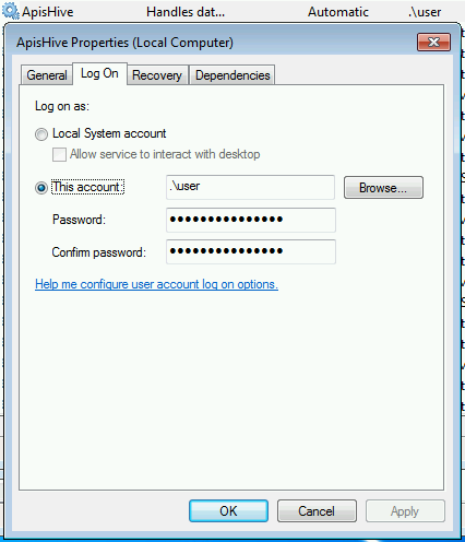 - Click "ApisHive" -> "Stop", and then "ApisHive" -> "Start", to restart: