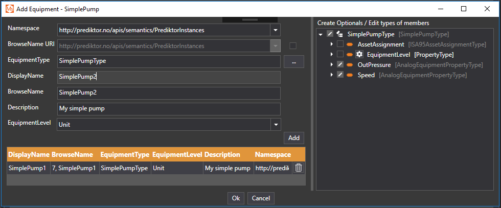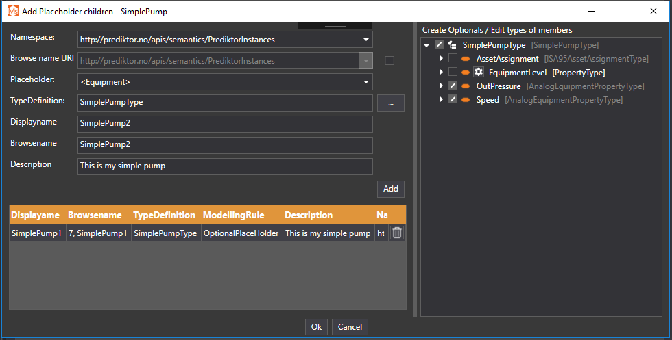 Give the module a name. Click Add and window with the properties of the module appears. Change the desired properties and click OK