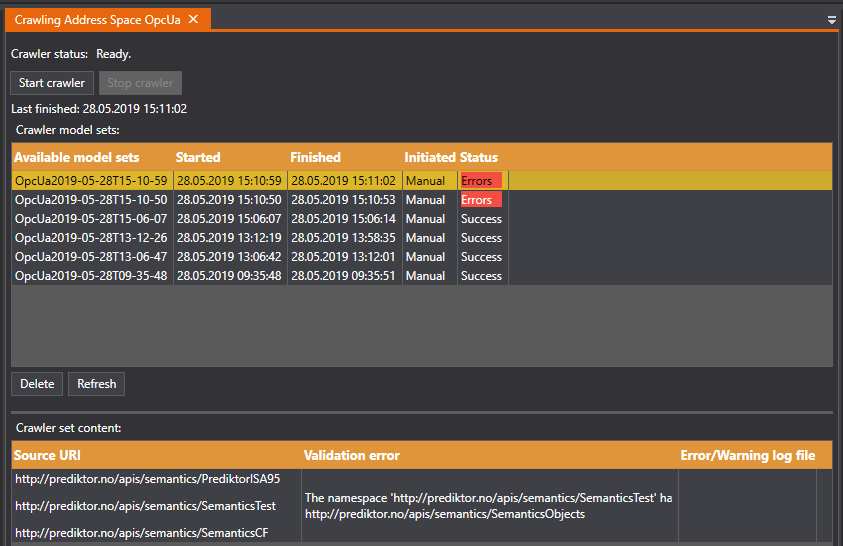 - Feature: When updating a namespace by importing or crawling an external server, replace the namespace database file instead of trying to replace the entire content of the database file. The previous method for updating a namespace can be restored by setting the DWORD registry value HKLM\SOFTWARE\Prediktor\Apis\[InstanceName]\Semantics\ReplaceDbInline to 1.
